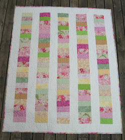 I decided that with all of the various fabrics and the narrow strips between them, I'd just go with an all-over stipple. Simple and effective, I think. For some reason, I got it into my brain that it would be better not to use my stitch regulator. But it turned out alright (so what if the stitches are a little big, right?).